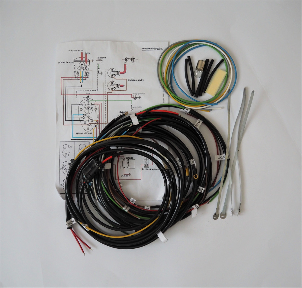 Elektromos kábelköteg és rajz féklámpa-kapcsoló előkészítéssel, Jawa 500 OHC 01