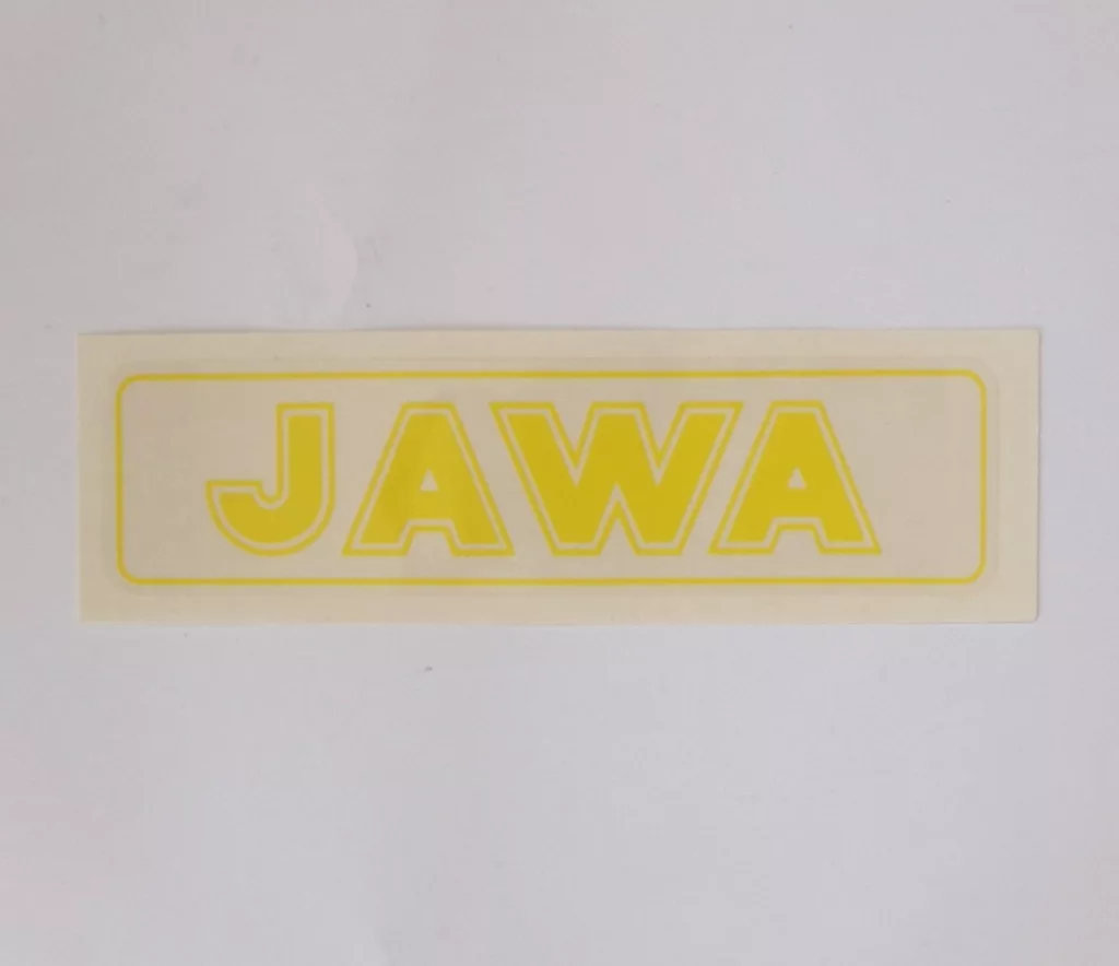 Matrica JAWA, sárga, 140x35 mm