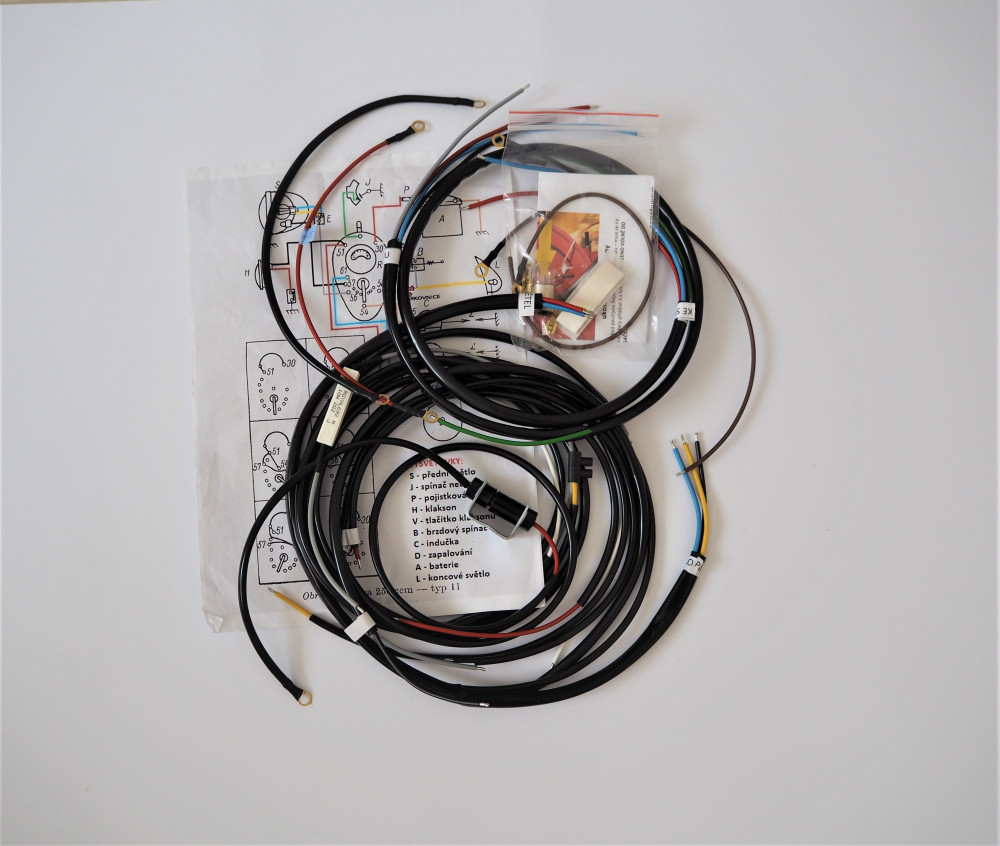 Elektromos kábelköteg és rajz féklámpa-kapcsoló előkészítéssel, Jawa 350 Perak